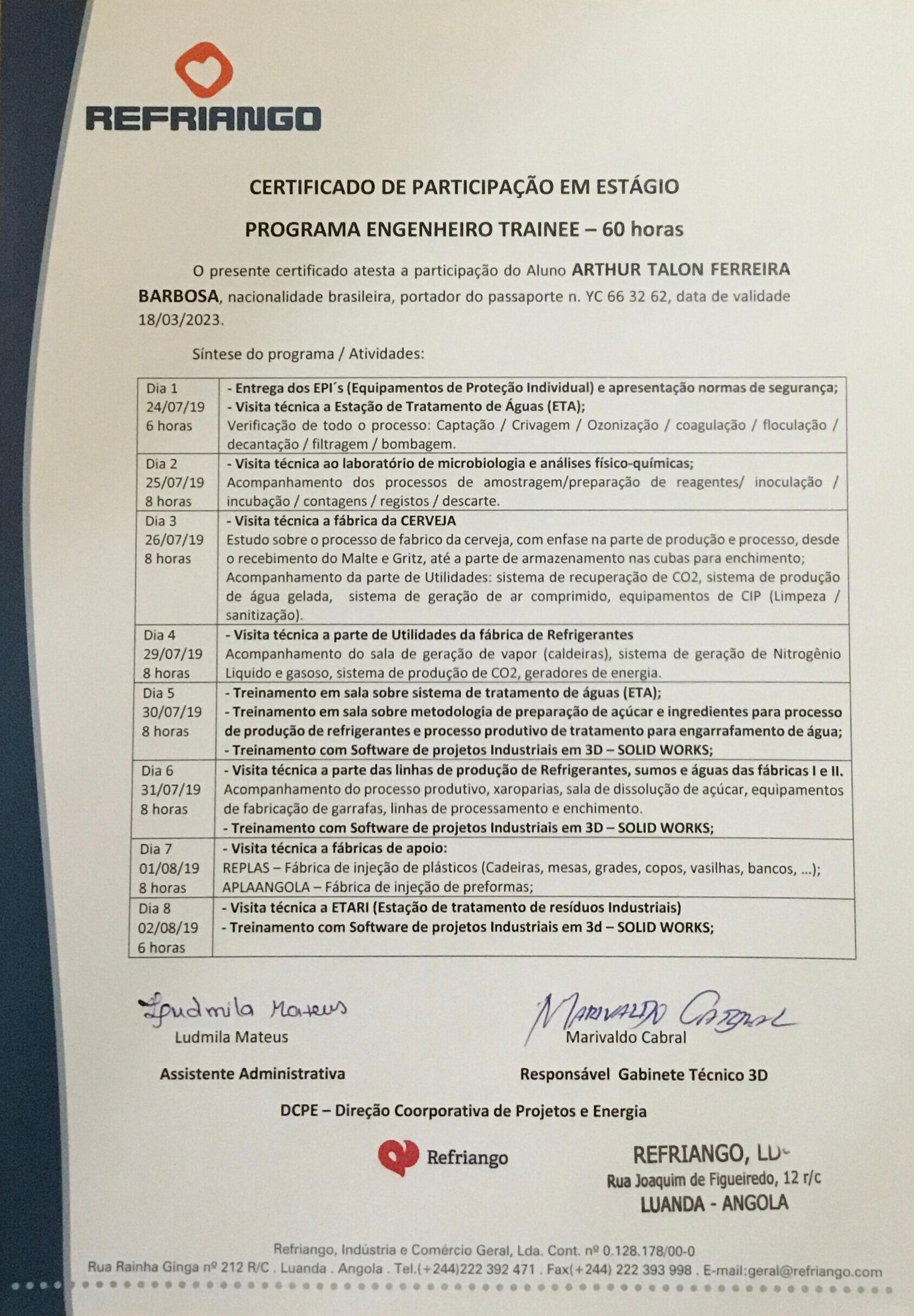 General engineering intern. Install networks across the company's facilities, repair broken machinery, enhance company's safety system with the implementation of worker identification and geolocation management system. Negotiate with suppliers and creating financial records.