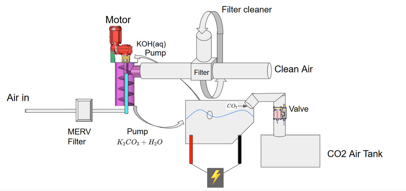 We planned to use KOH regeneration via Electrolysis to capture CO2 from the Air for our Chem E Cube. Given that we didn't make it pass the twenty teams we don't have any plans to build the cube this year. Maybe try again in next year.