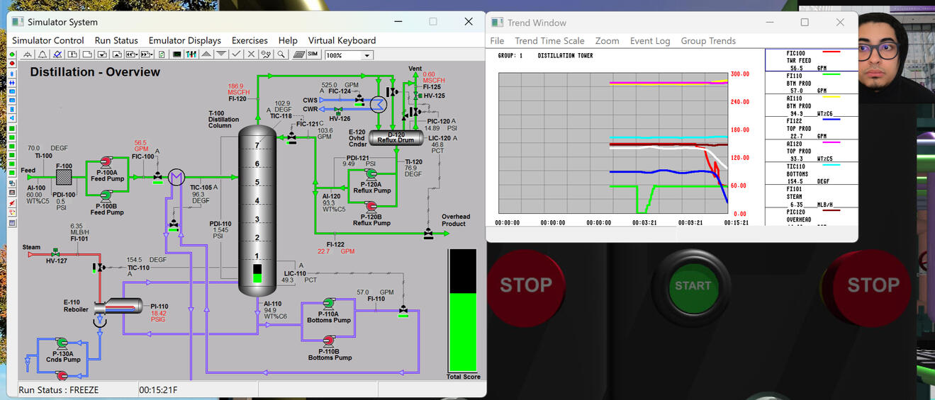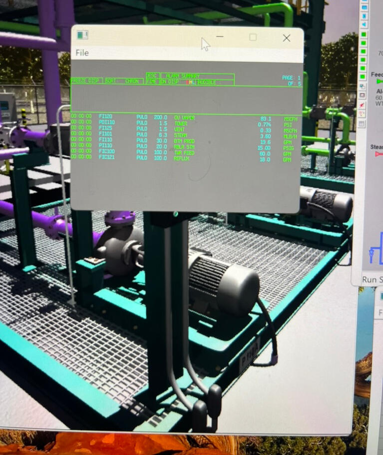 THE COMPETITION INVOLVED RUNNING DIFFERENT SIMULATIONS OF ISSUES THAT HAVE OCCURED IN CHEMICAL PLANTS IN THE PAST AND FIXING THE ON THE SPOT VIRTUALLY BY CLOSING VALVES, TURNING PUMPS OFF, REGULATION DISTILLATE & MORE.