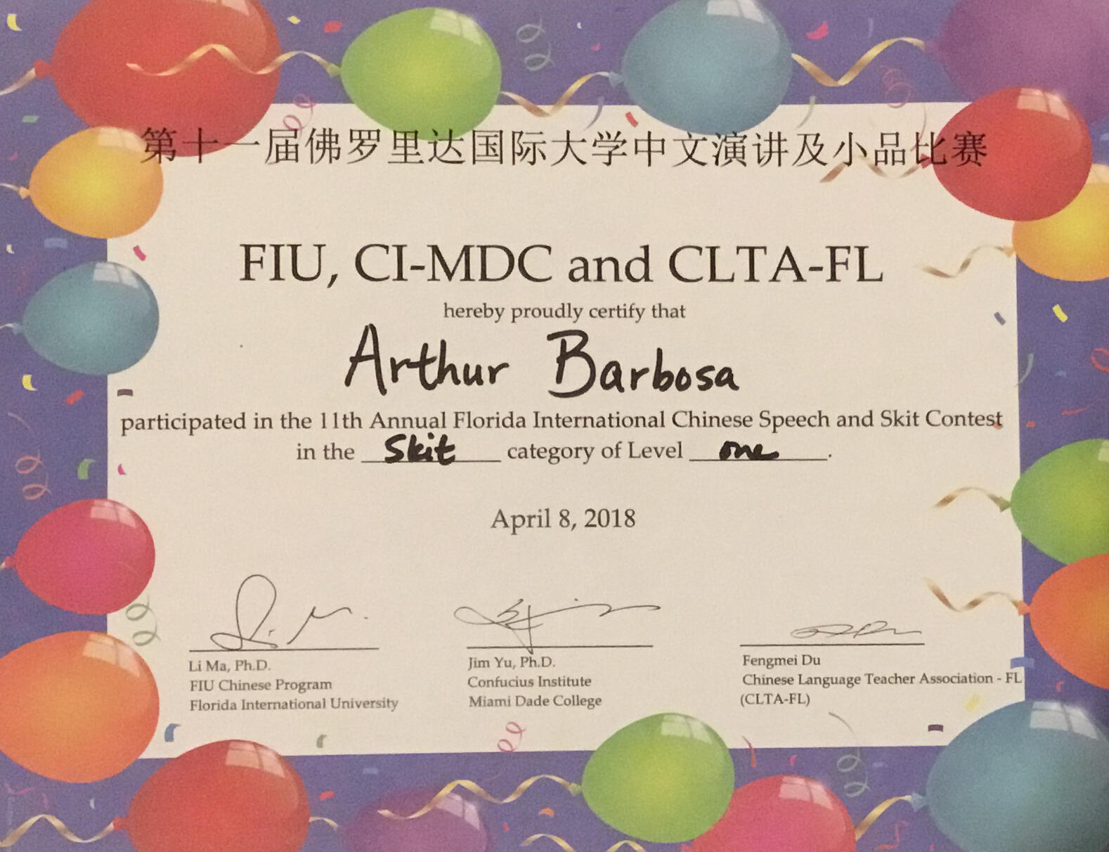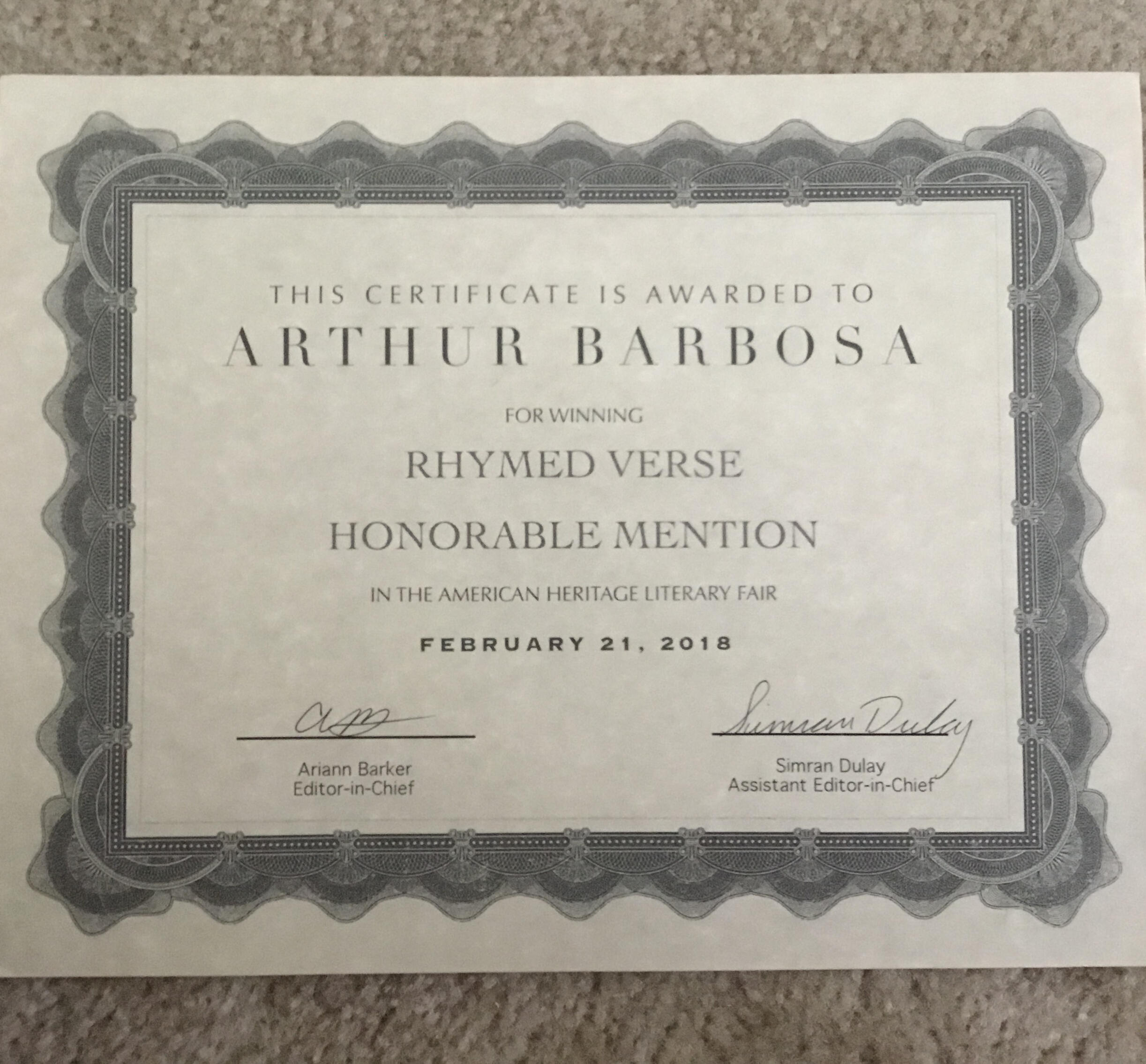 1st place winner in the art competition.