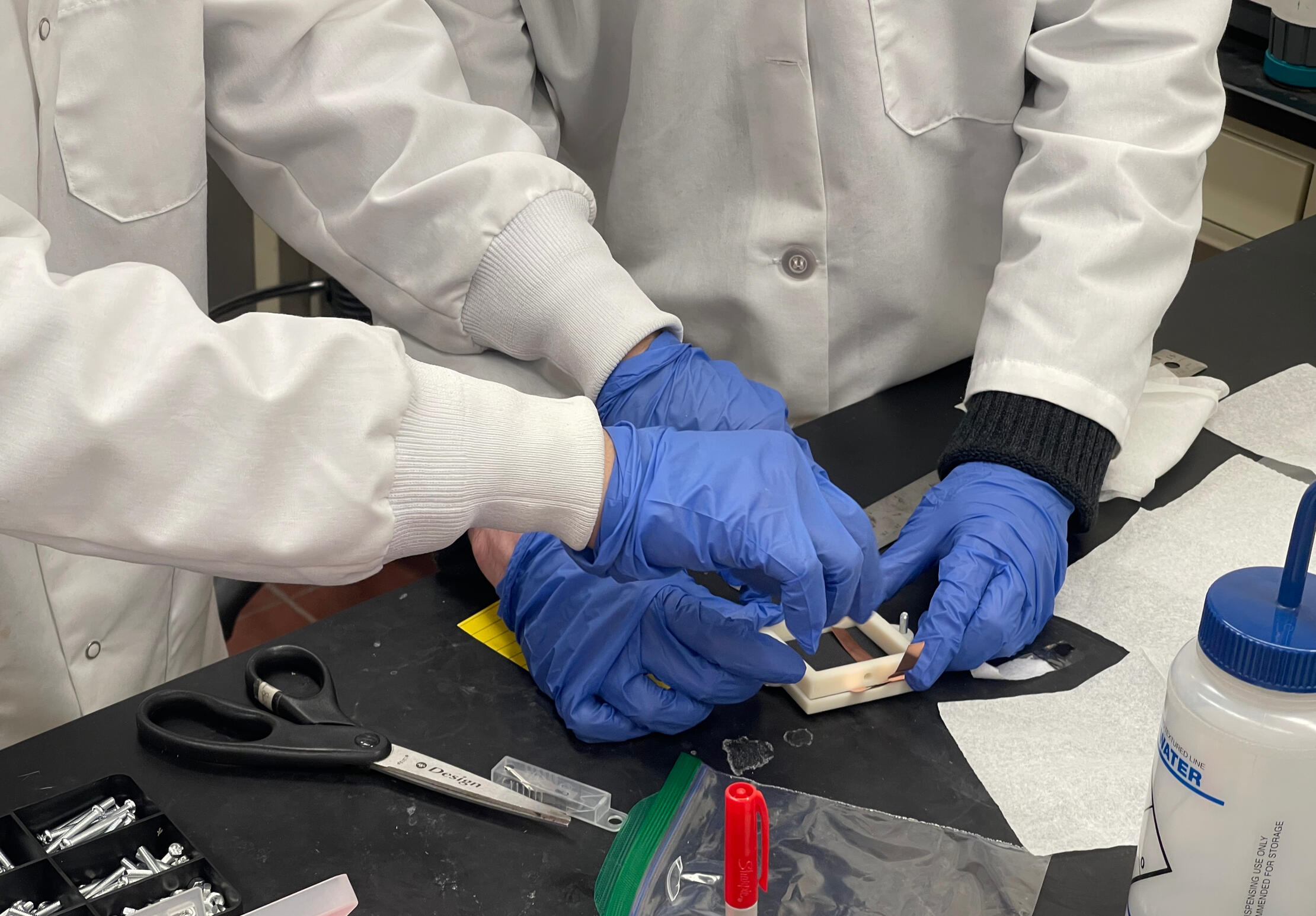Built zinc–air battery using a proton exchange membrane (PEM) to separate the anode and cathode while allowing ion transport. Zinc metal served as the anode, where zinc was oxidized to Zn²⁺ releasing electrons, while oxygen from air was reduced at the air cathode; the PEM allowed protons/ions to pass to maintain charge balance, enabling continuous electron flow through an external circuit and demonstrating how chemical energy is converted into electrical energy in metal–air batteries.