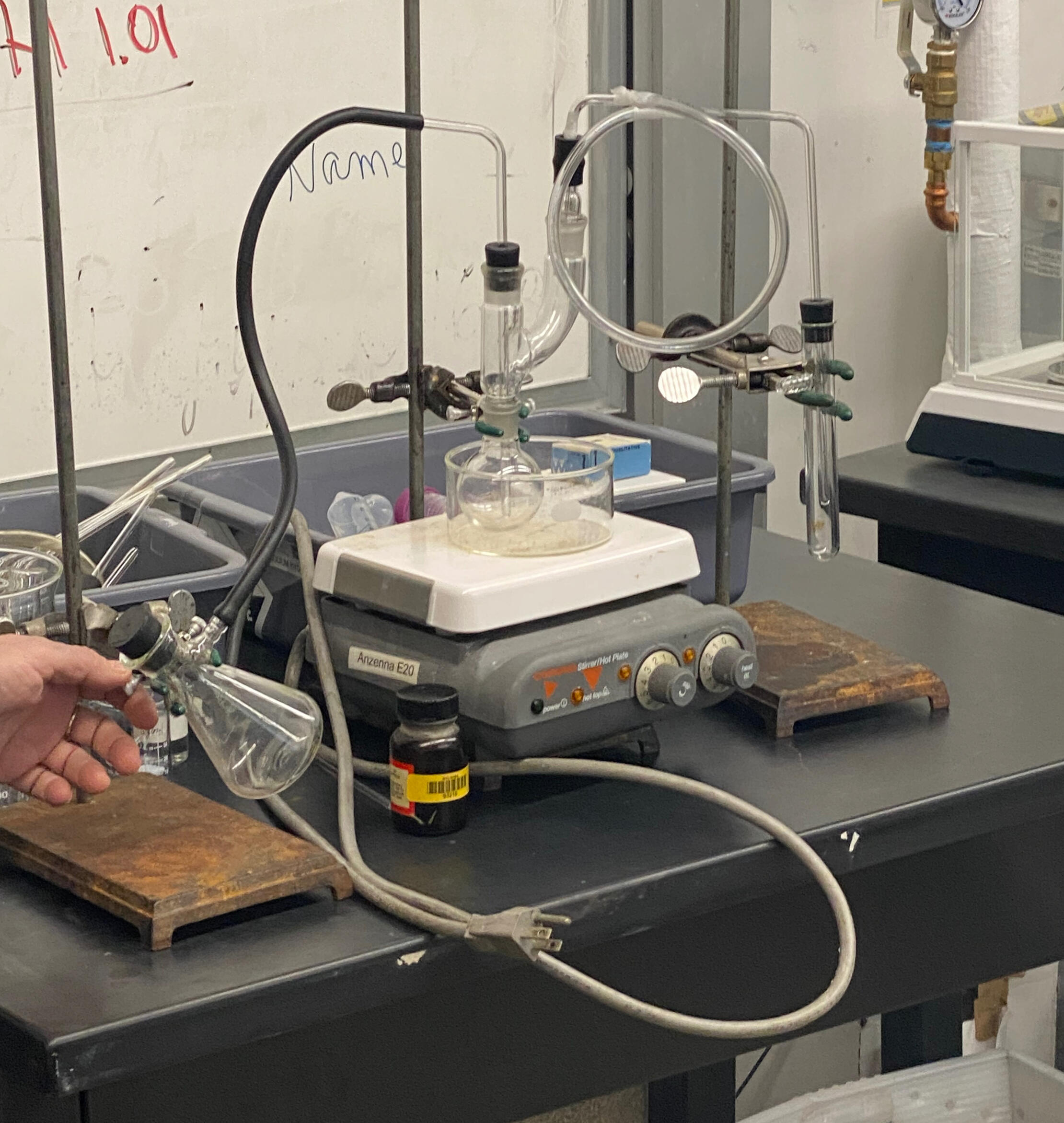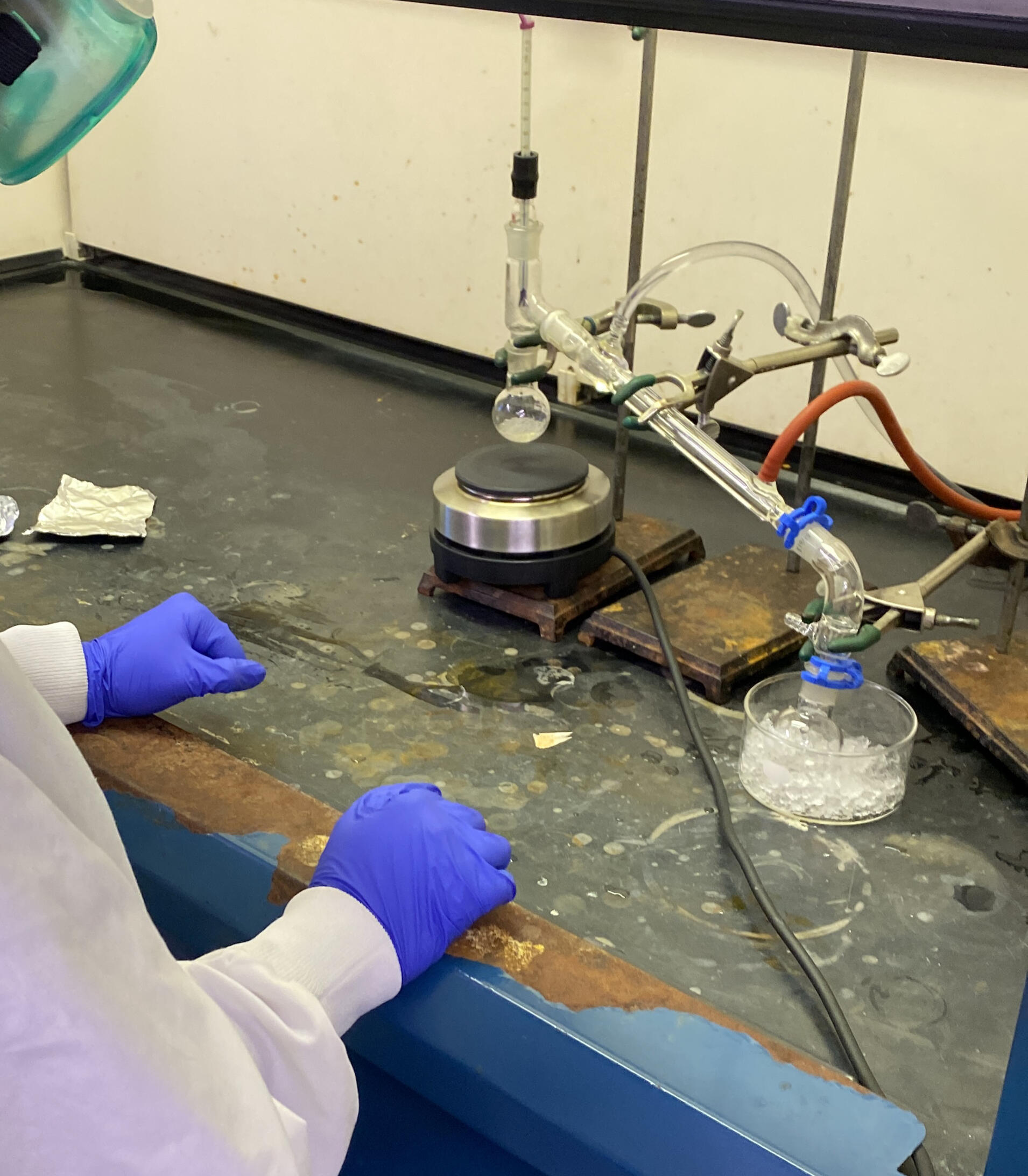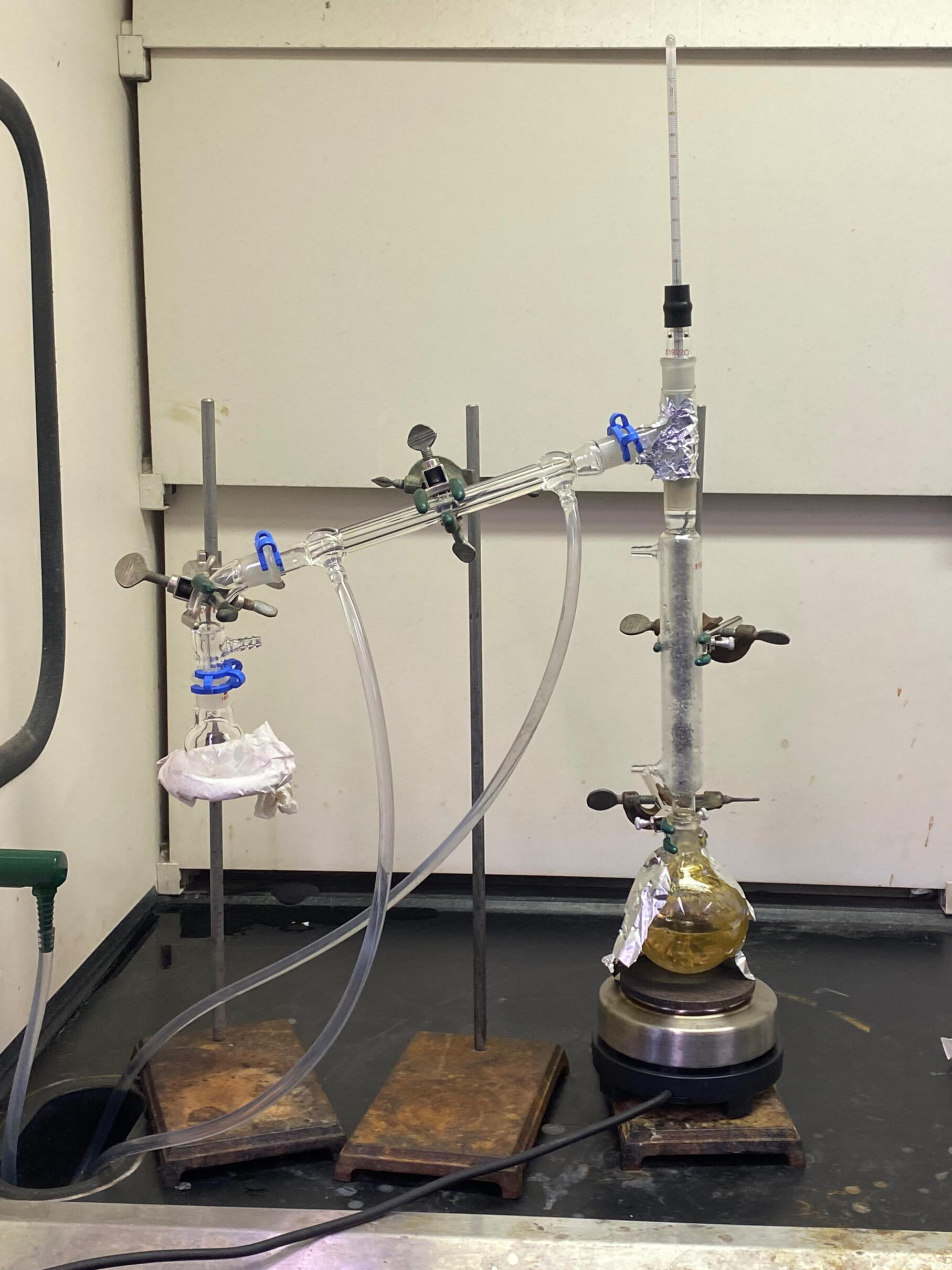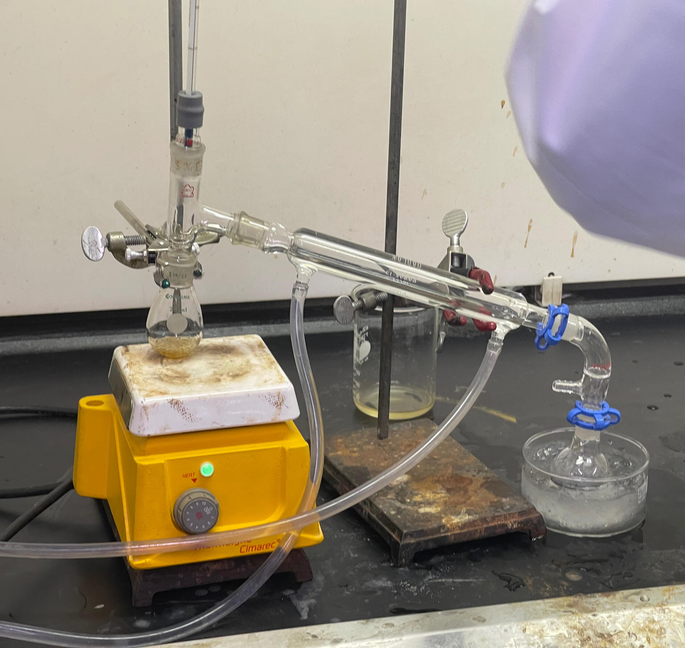 The product was purified by liquid–liquid extraction, drying, and simple distillation, then identified by boiling point and IR spectroscopy.