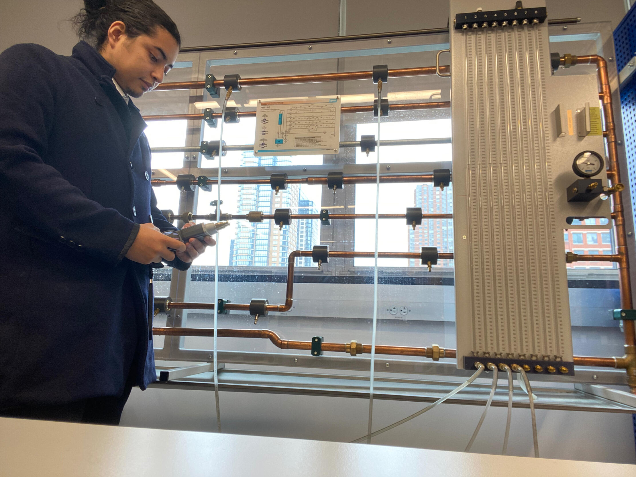 Studied about this apparatus that performs incompressible flow through pipes and fittings using devices such as rotameters, manometers, and differential pressure gauges. The experiment demonstrated how flow rate, pressure drop, and discharge coefficients relate to pipe geometry and flow regime, reinforcing Bernoulli’s equation and friction loss concepts.