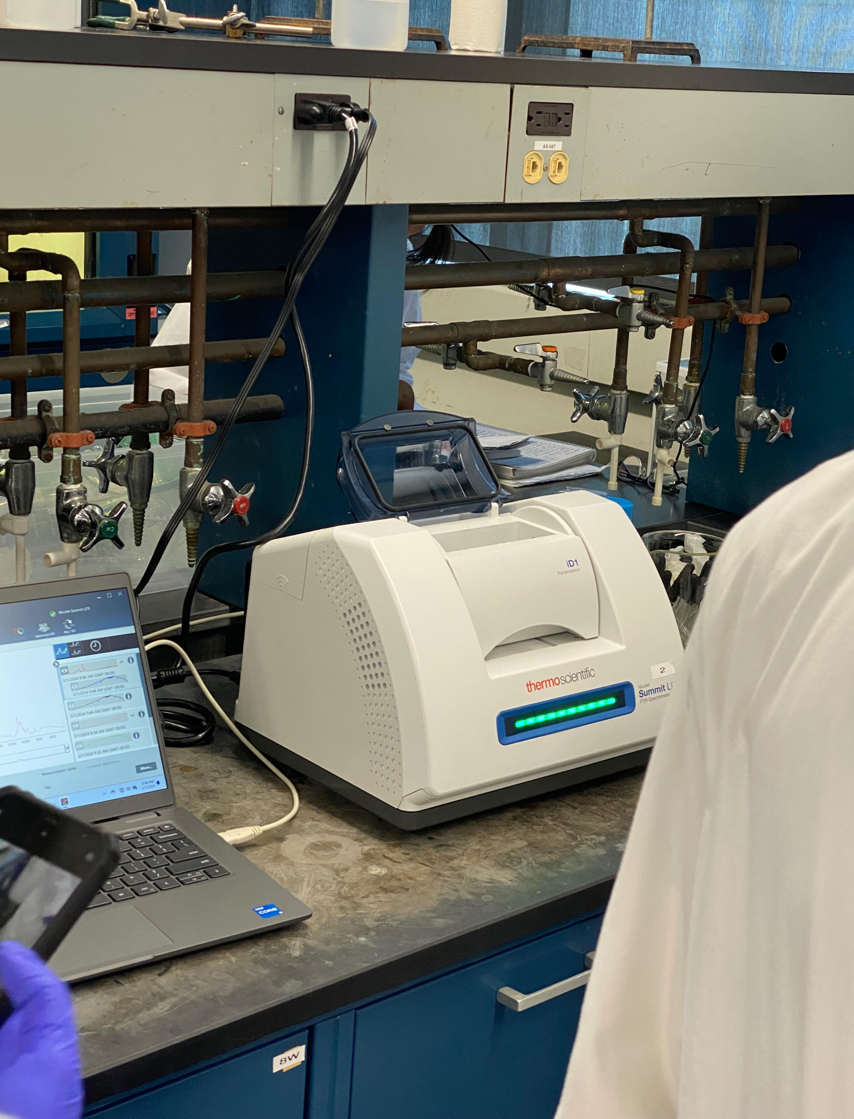 Performed infrared (IR) spectroscopy, specifically Fourier Transform Infrared (FTIR) spectroscopy, to analyze molecular vibrations and identify chemical bonds and functional groups in a sample.