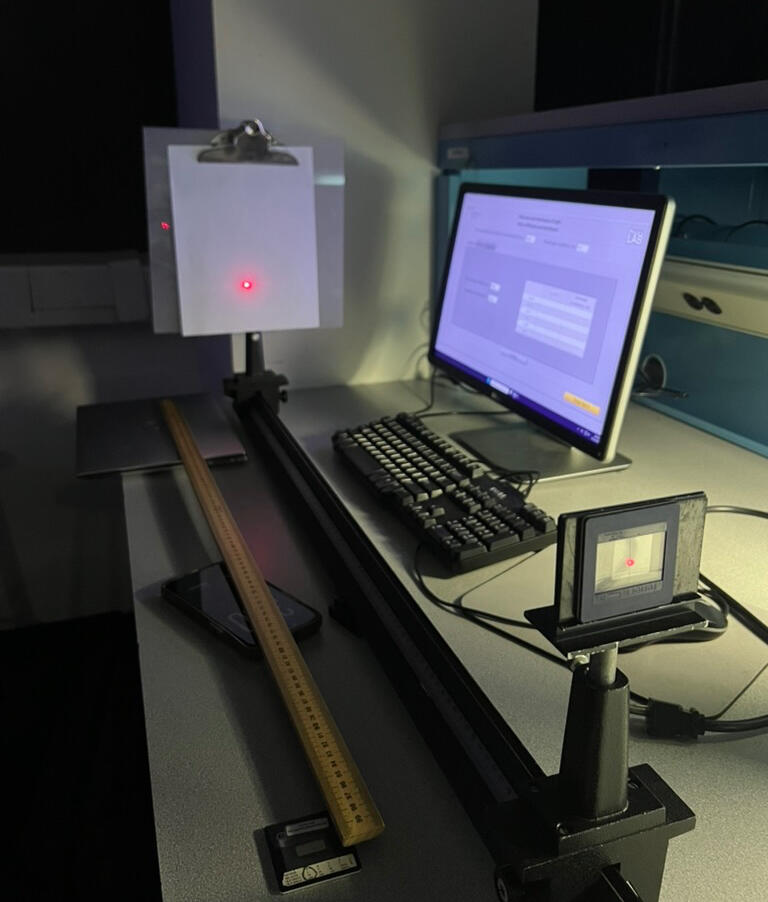 Studied diffraction and interference of light by observing patterns produced by single slits, thin wires, double slits, and diffraction gratings to understand the wave nature of light. Measurements of fringe positions were used to determine laser wavelength, slit spacing, wire diameter, and spectral wavelengths of hydrogen and helium lamps using interference equations.