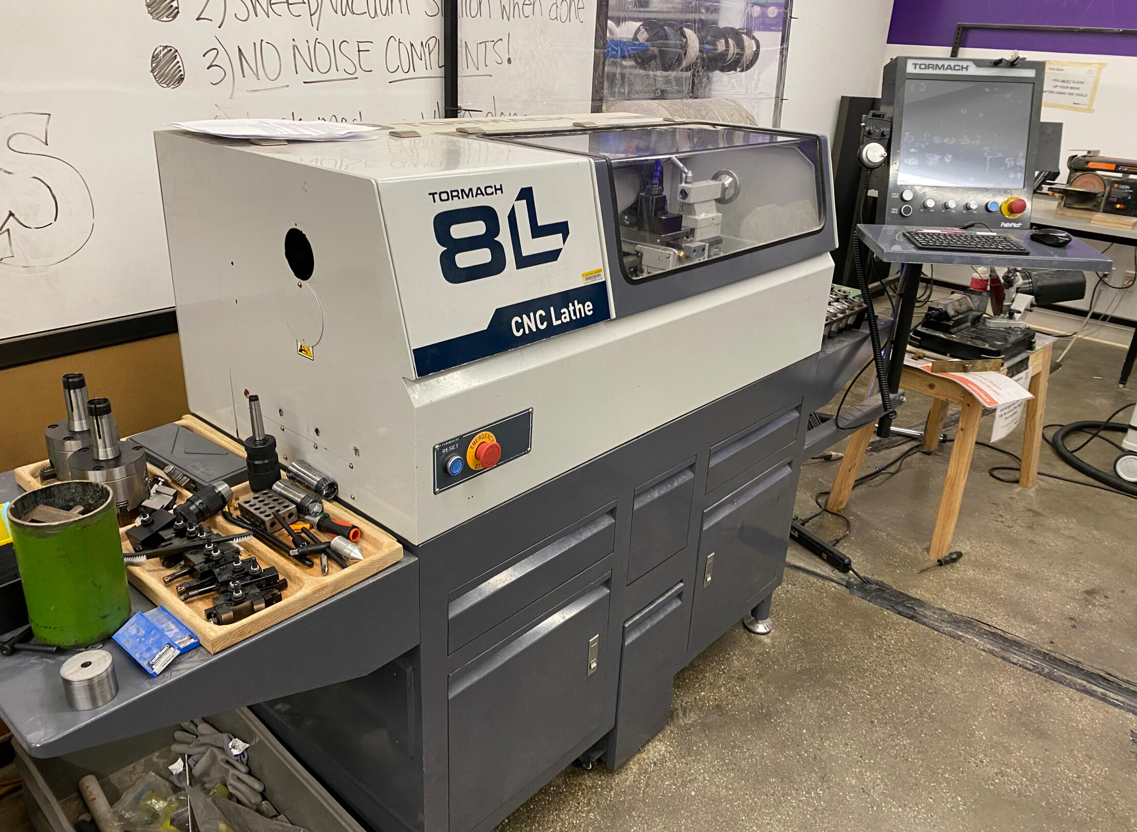 Tormach 8L is a CNC lathe used for precision turning operations on rotationally symmetric components such as shafts, bushings, and threaded parts.