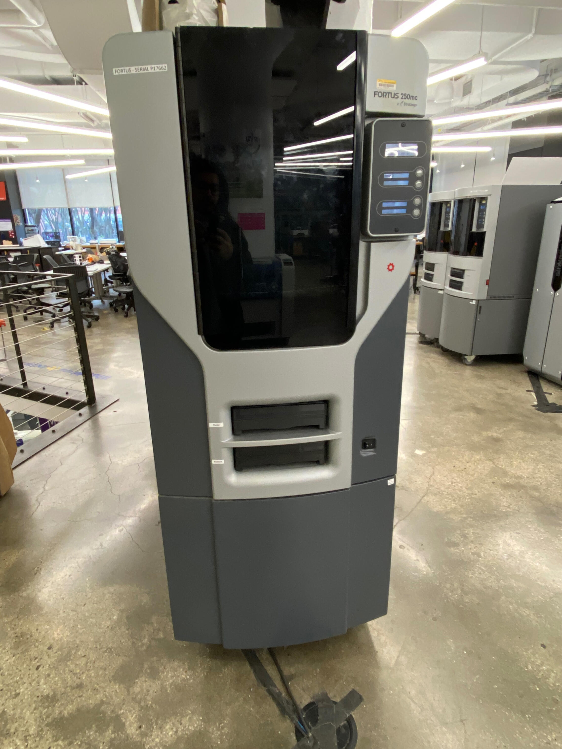 Fused Deposition Modeling (FDM) industrial 3D printer that uses production-grade thermoplastics like ABSplus to create durable prototypes, tooling, and end-use parts