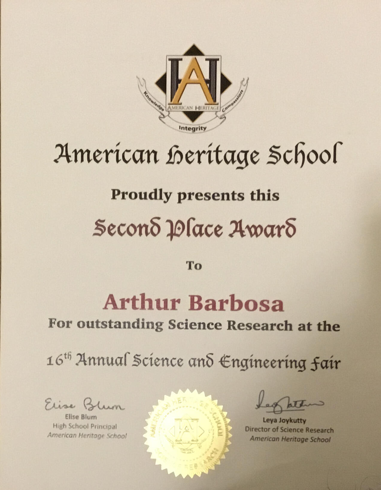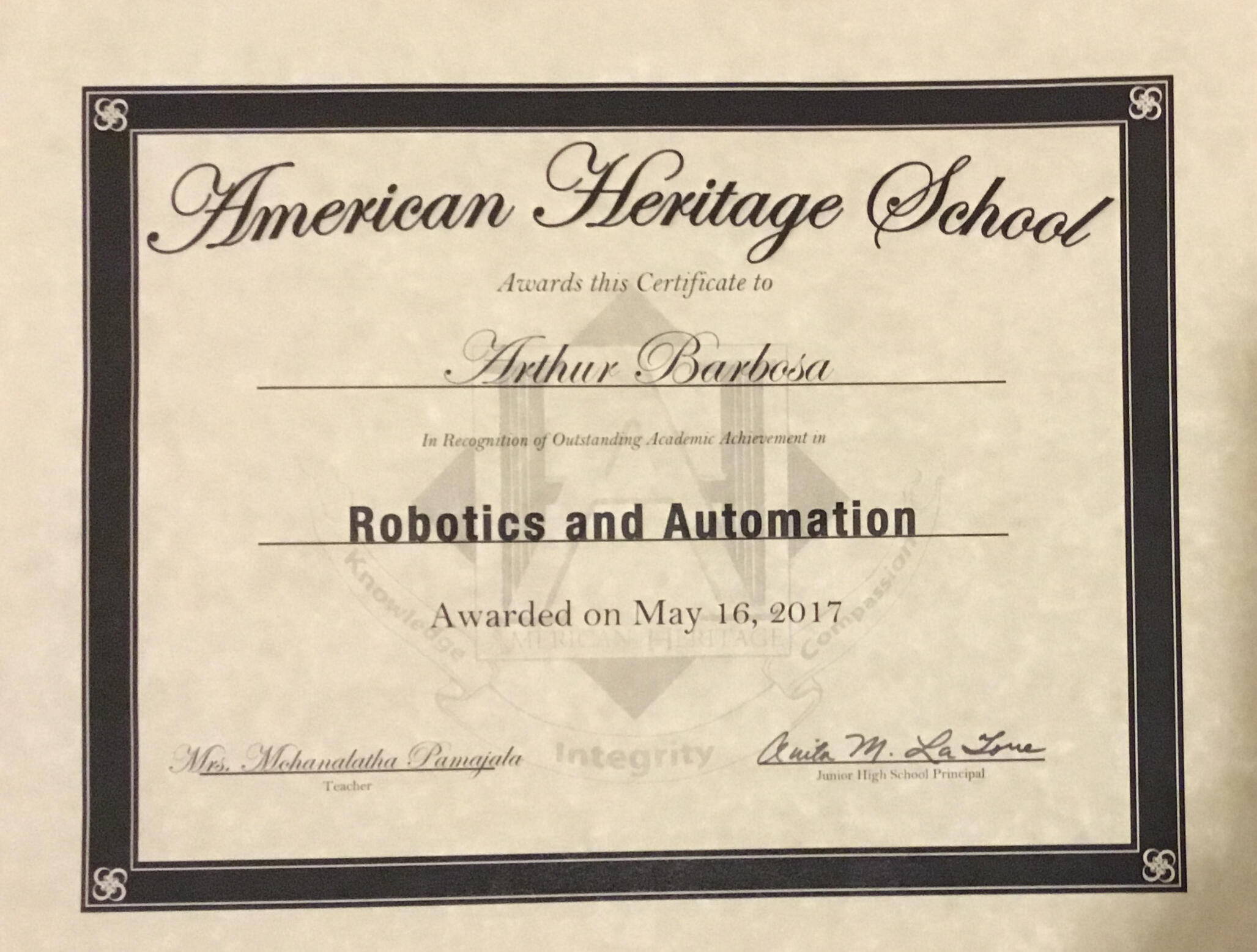 Multiple Award Winner in SECME competitions. 5-year consecutive wins on magnetic generator competitions hosted by FPL. AASHTO qualifier and 1st place county winner on TRAC Bridge Challenge. 3rd place Vex Robotics, Qualified for nationals. President of AHS's STEM club. Mentored in Water bottle rocket, bionic hand, mouse trap cars, Coding, and CO2 car tank competitions. Lead the organization to be placed 2 times 1st place in overall competitions.