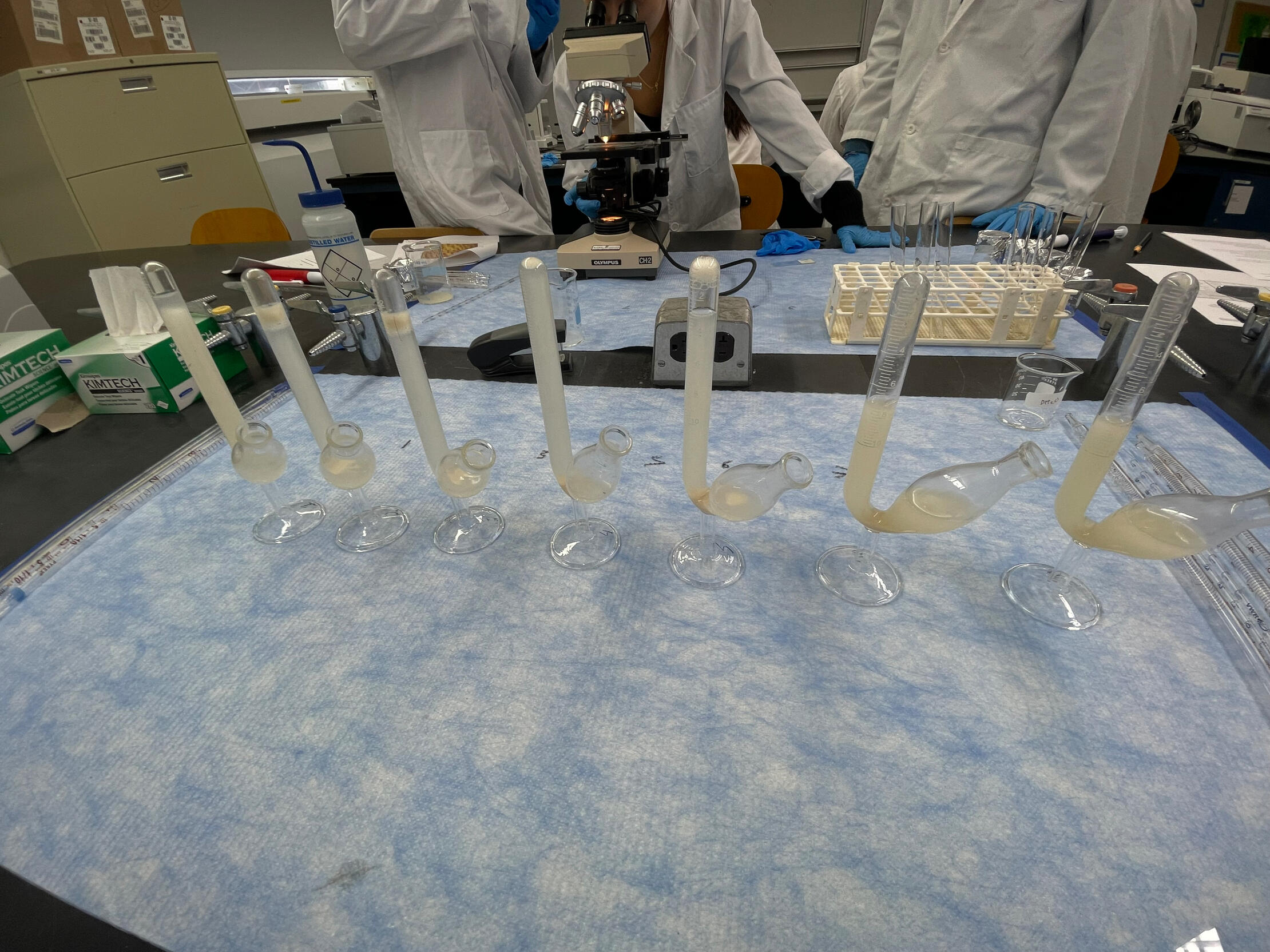 Investigated cellular respiration and fermentation in yeast by measuring CO₂ production under different chemical conditions. By adding activators (glucose, pyruvate, magnesium sulfate) and an inhibitor (sodium fluoride), the experiment showed how substrates and enzymes affect the rate of respiration, observed as gas accumulation in fermentation tubes.