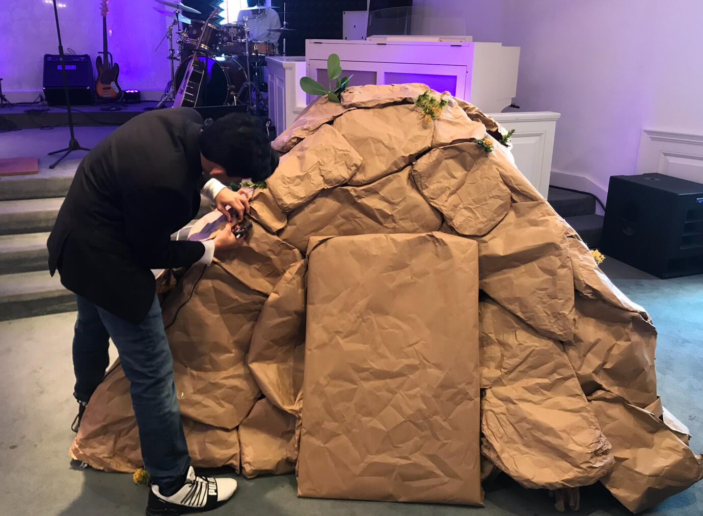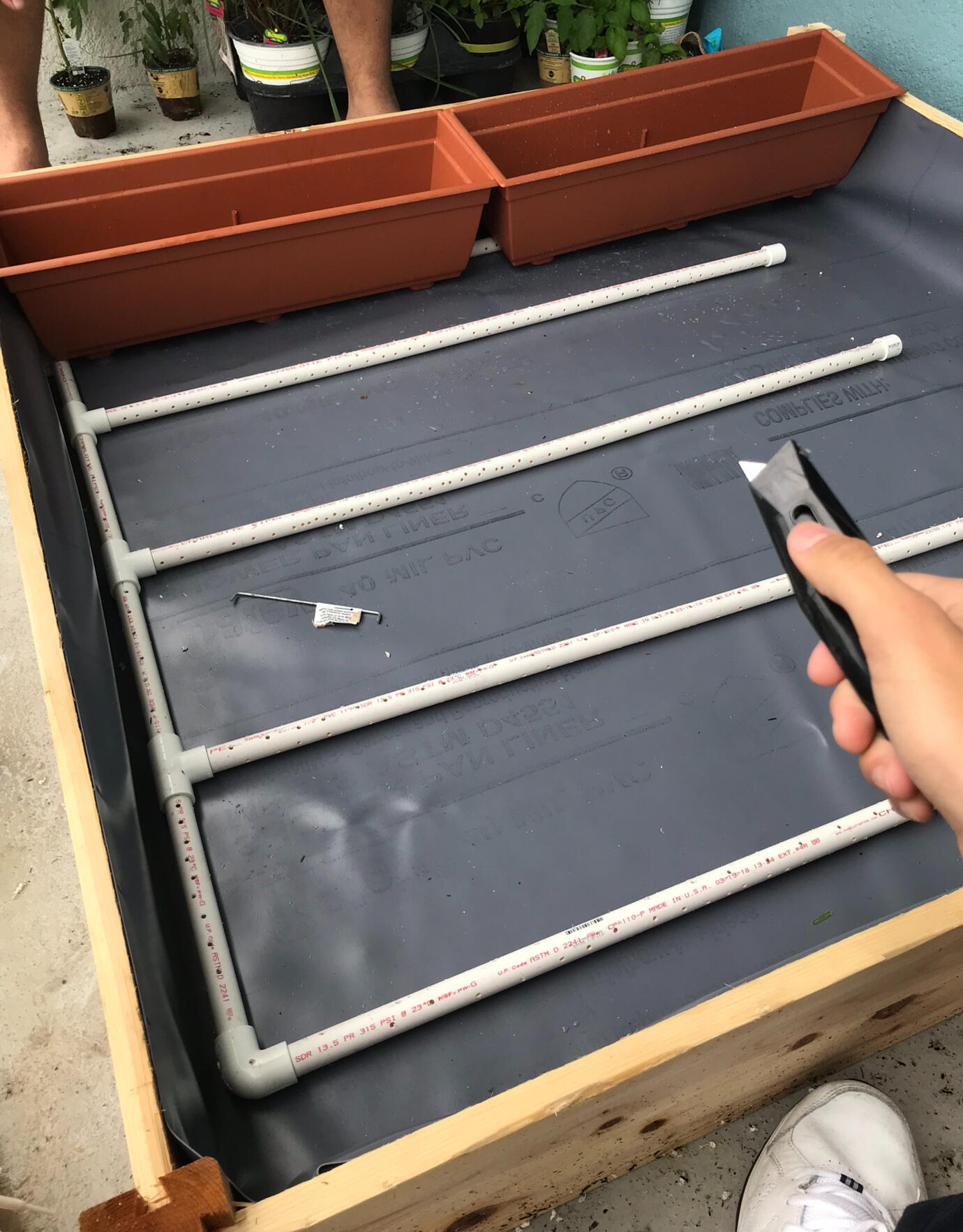 Built an automatic water system to clean pets' necessities. The system was filled with dirt, rocks, and grass after.