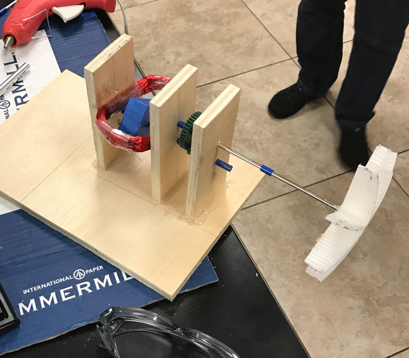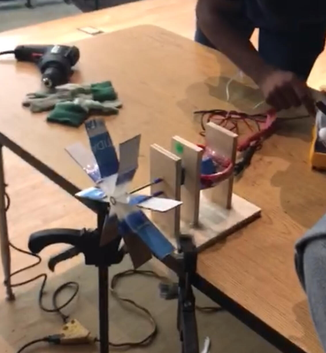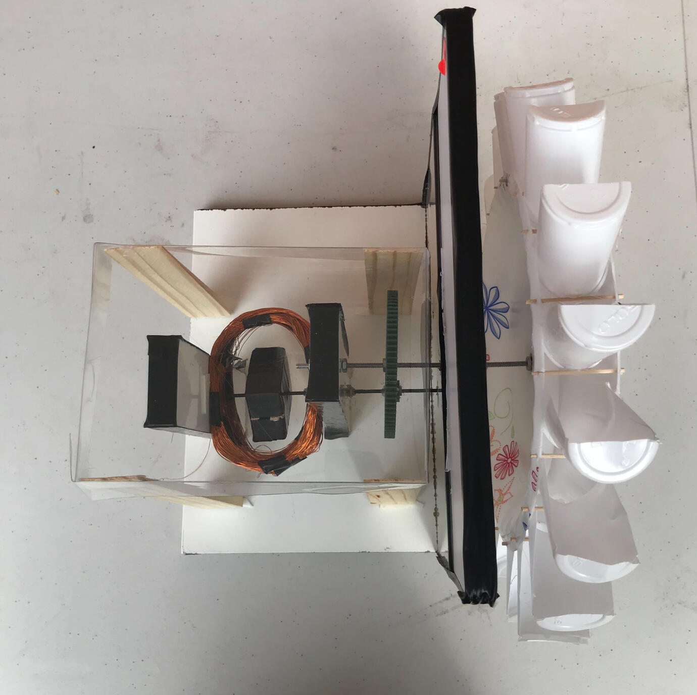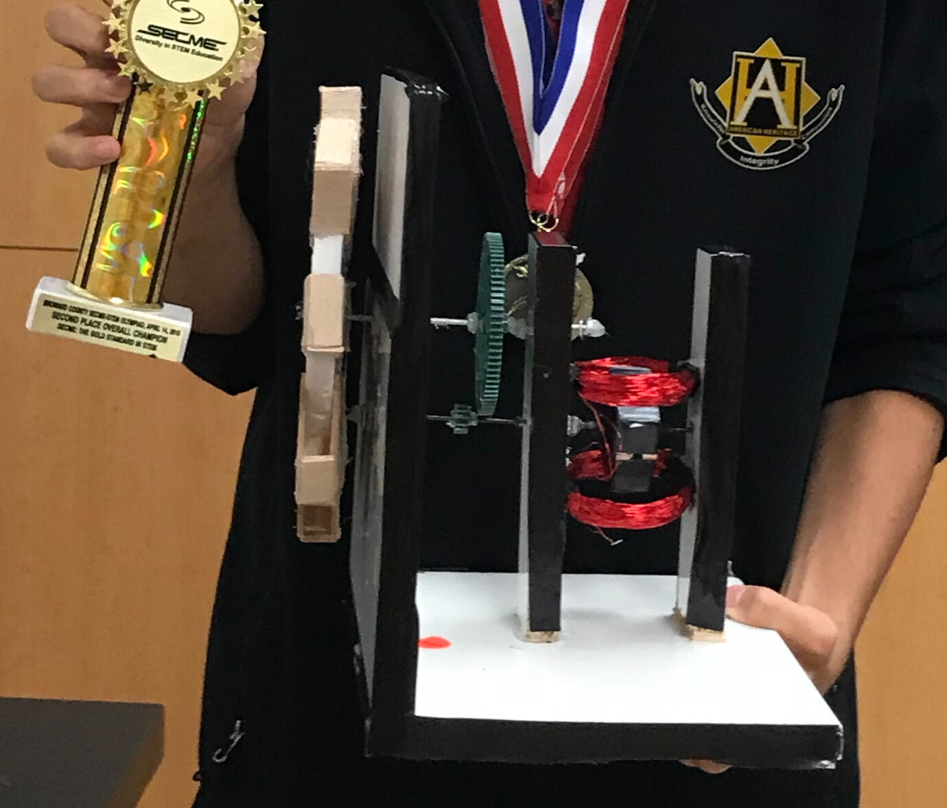Make a magnetic generator that would be powered by a jet stream of air with a given amount of copper and a limited amount of magnets. Team won 1st place in Junior High Competition.