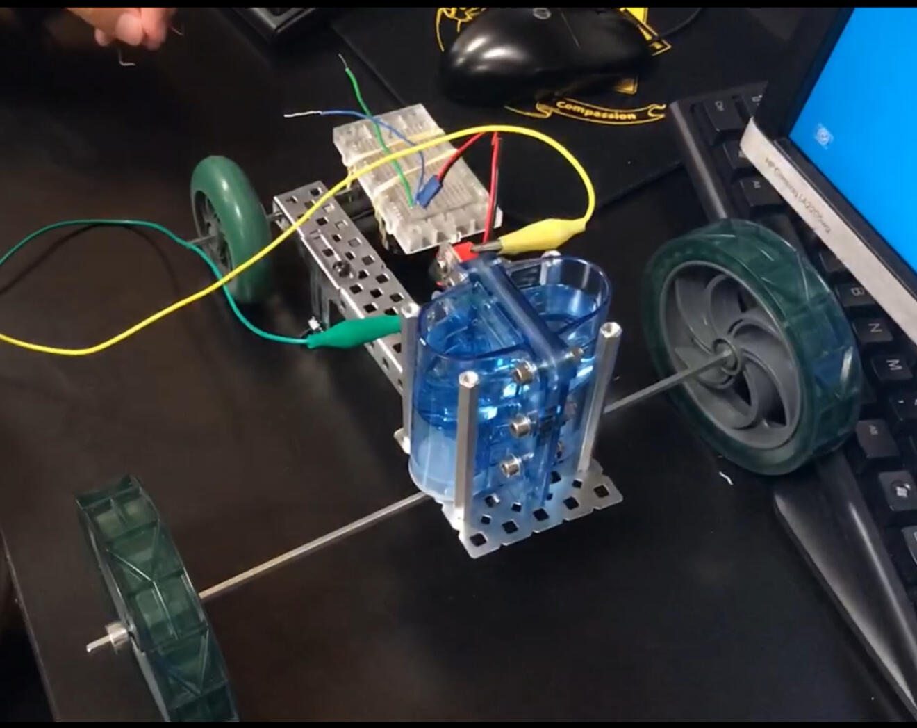 Zinc Ion Battery System with ten Cells. Two motors, 5 cells per motor. Stopping Mechanism was based on a change in oppacity detected by a spectrometer