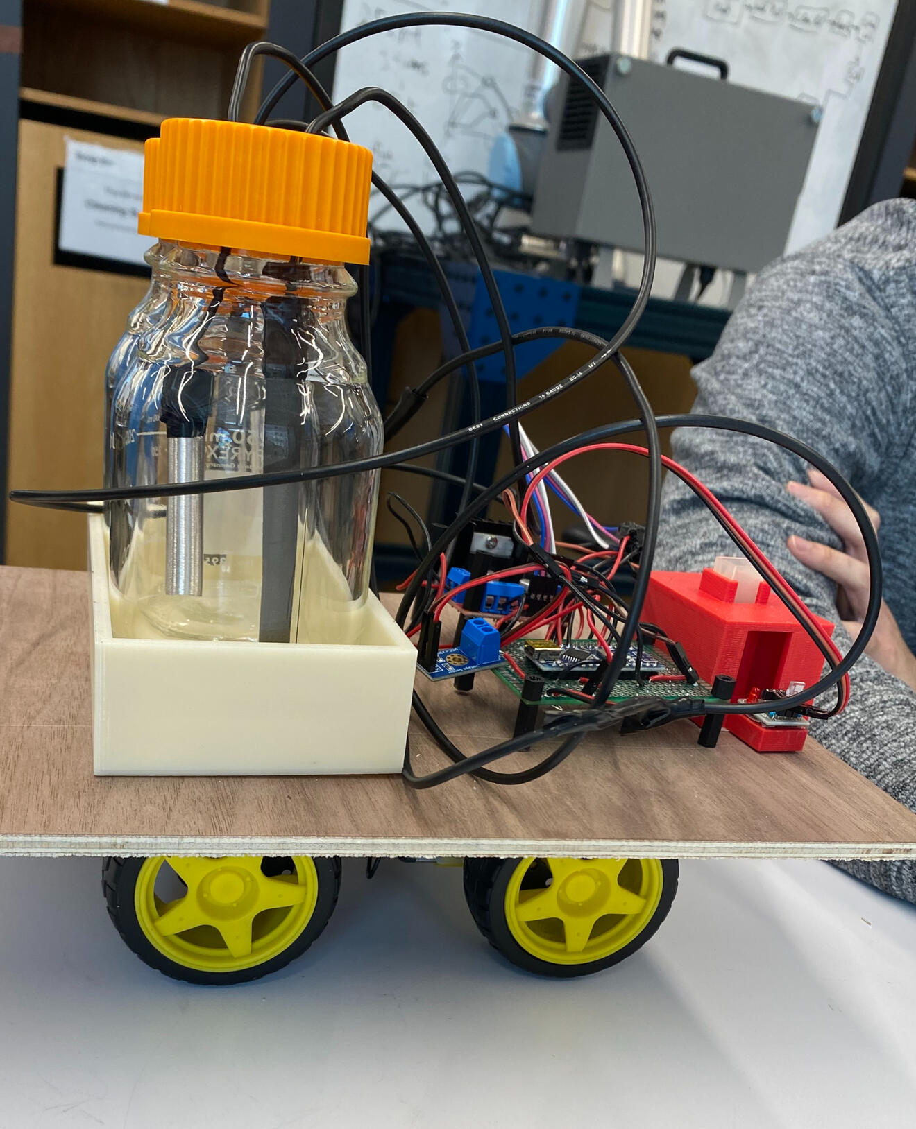 The goal is to create a chemical reaction capable of producing movement in a small vehicle and one to stop the movement. Member of the controls subteam. Currently designing the vehicle.
