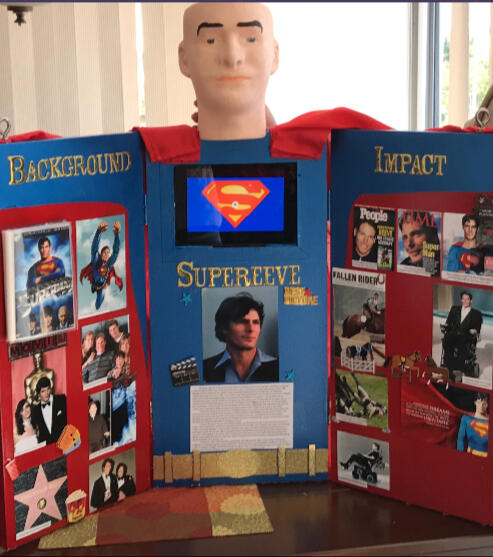I wrote a research paper on the life of Christopher Reeve, the first actor of Superman for the National History Day competition. The following pictures are of my board used for presentation. The board had an ipad with a battery supply that would play a short continuous video about his life.